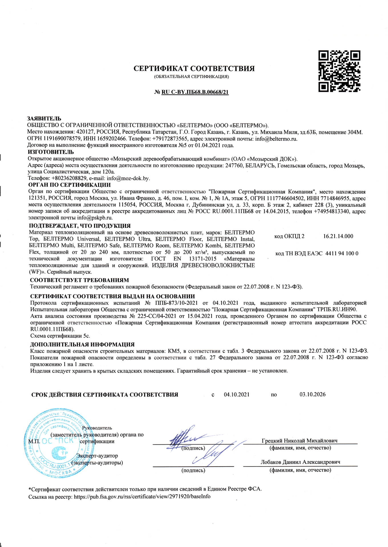 Подтвержденное сертификатами и действующими ГОСТ